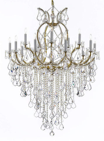 Set of 2 - This beautiful Chandelier is trimmed with Empress Crystal(TM) Maria Theresa 100% Crystal Chandelier. A great European Tradition. Nothing is quite as elegant as the fine crystal chandeliers that gave sparkle to brilliant evenings at palaces and manor houses across Europe. This two-tier version from the Maria Theresa collection is decorated with 100% crystal that capture and reflect the light of the candle bulbs, each resting in a scalloped bobache. The timeless elegance of these chandeliers is sure to lend a special atmosphere in every home. Please note this item requires assembly. This item comes with 18 inches of chain. SIZE: H 50" W 37" 16 LIGHTS.