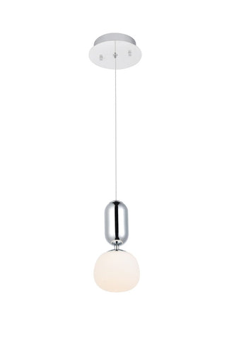 The Lea 1-light pendant in a chrome finish is a bulbous affair. In modern whimsy, the chrome capsule accents the white spherical shade, dimming the light softly as it shines through in unaffected brilliance. With contemporary style and a luxurious charm, this pendant will amaze and fascinate all.