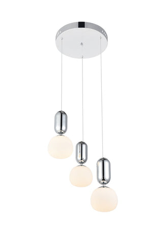 The Lea 3-light pendant in a chrome finish is a bulbous affair. In modern whimsy, chrome capsules accent the white spherical shades, dimming the lights softly as they shine through in unaffected brilliance. With contemporary style and a luxurious charm, this pendant will amaze and fascinate all.
