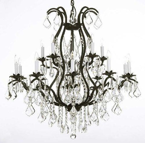Set of 2 - This beautiful Chandelier is trimmed with Empress Crystal(TM) A Great European Tradition. Nothing is quite as elegant as the fine crystal chandeliers that gave sparkle to brilliant evenings at palaces and manor houses across Europe. This beautifully unique version from the Versailles Collection has 100% Crystal that capture and brilliantly reflect the light of the candle bulbs. The frame is all wrought iron, adding the finishing touch to a wonderful fixture. The timeless elegance of this chandelier is sure to lend a special atmosphere anywhere its placed! Please note this item requires assembly. This item comes with 18 inches of chain. size: H36" x W36" 15 LIGHTS.
