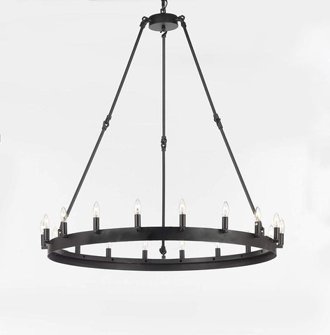 Set of 2 - Wrought Iron Vintage Barn Metal Castile One Tier Chandelier Chandeliers Industrial Loft Rustic Lighting W 38" H 40" - 2EA G7-3428/18